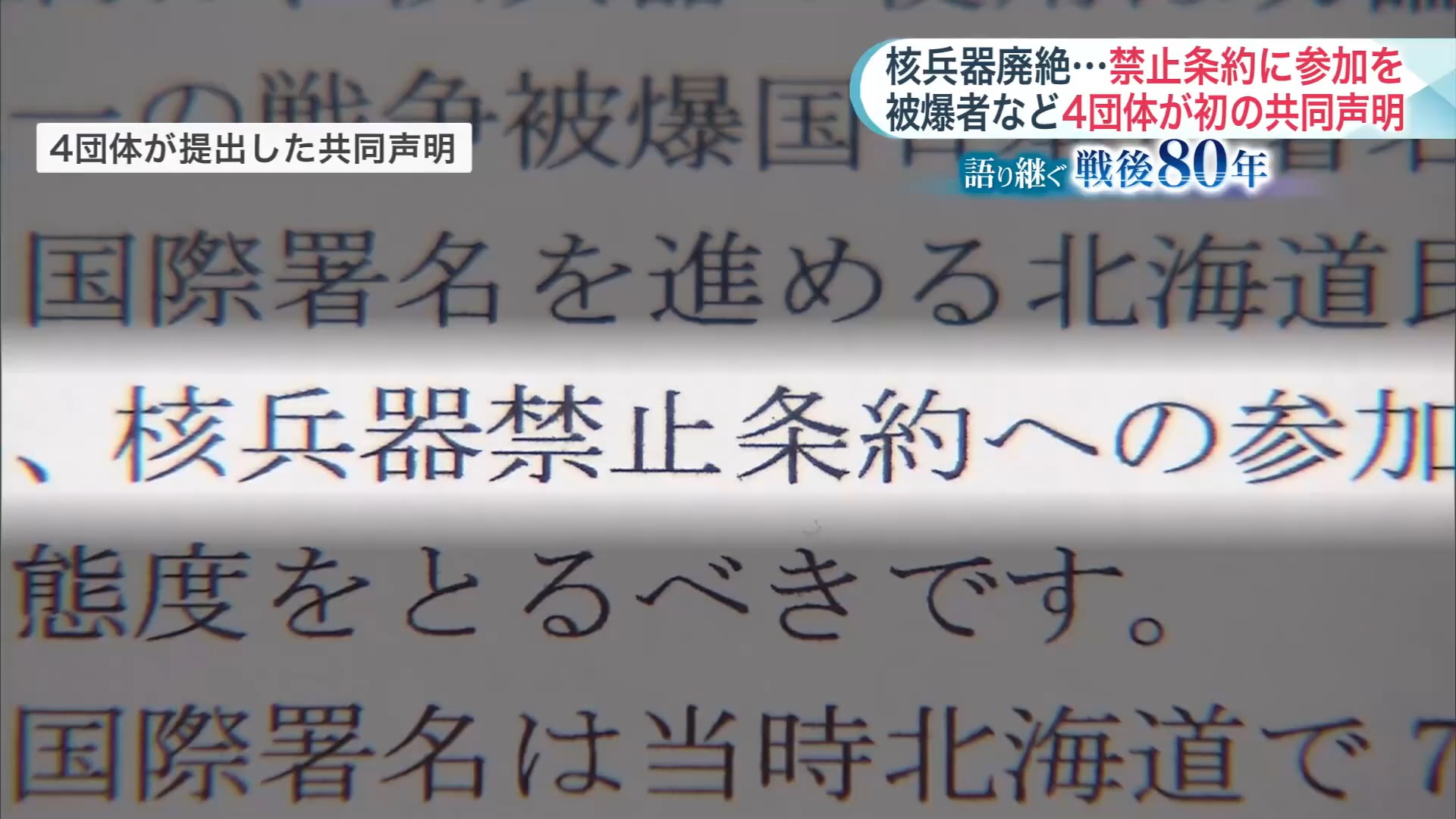 【戦後80年】道内4つの被爆者団体が初の“共同声明”…核廃絶&禁止条約への参加求める「実効性ある核廃絶目指して」…被爆者健康手帳持つ人は道内171人 平均年齢86歳超に