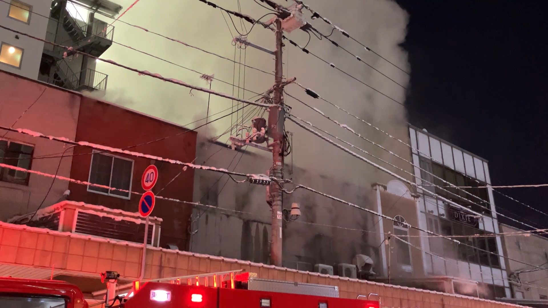 消防によりますと1階の飲食店から火が出たとみられ、消防車などが多数出動し、消火活動が続けられました。