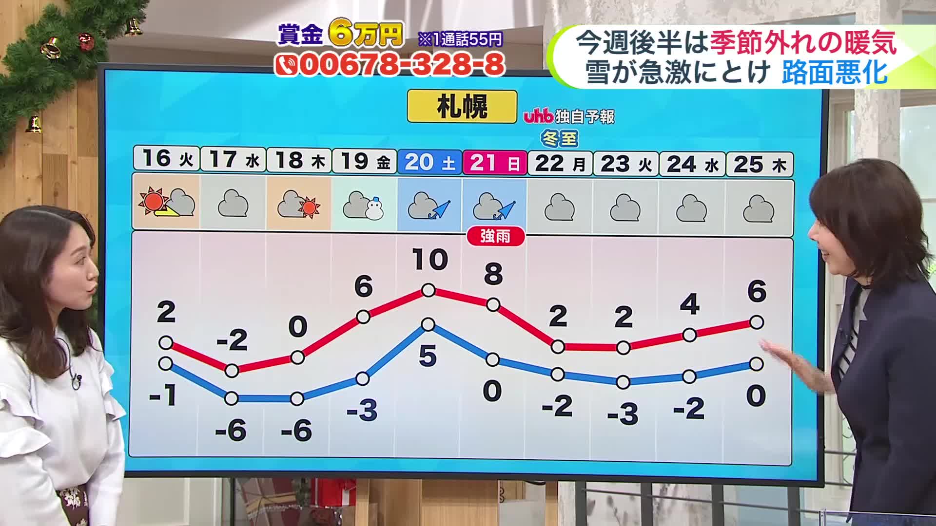 【菅井さんの天気予報 15日(月)】真冬の嵐から一転!週末は季節外れの暖気…札幌は10℃予報で積雪は半分くらいに