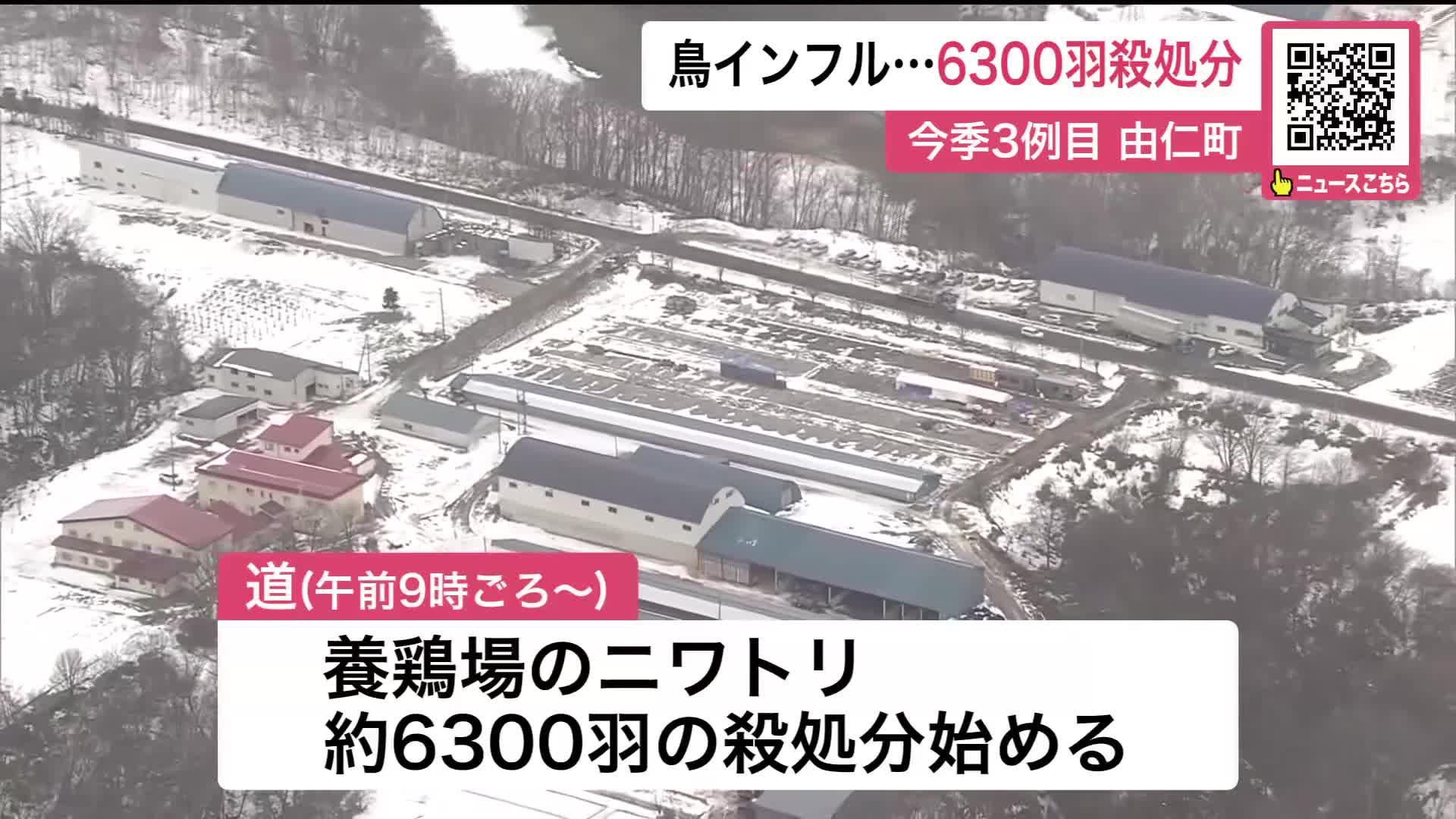 北海道空知地方の由仁町で養鶏場のニワトリが高病原性鳥インフルエンザに感染していたことが確認され、約6300羽の殺処分が始まりました。