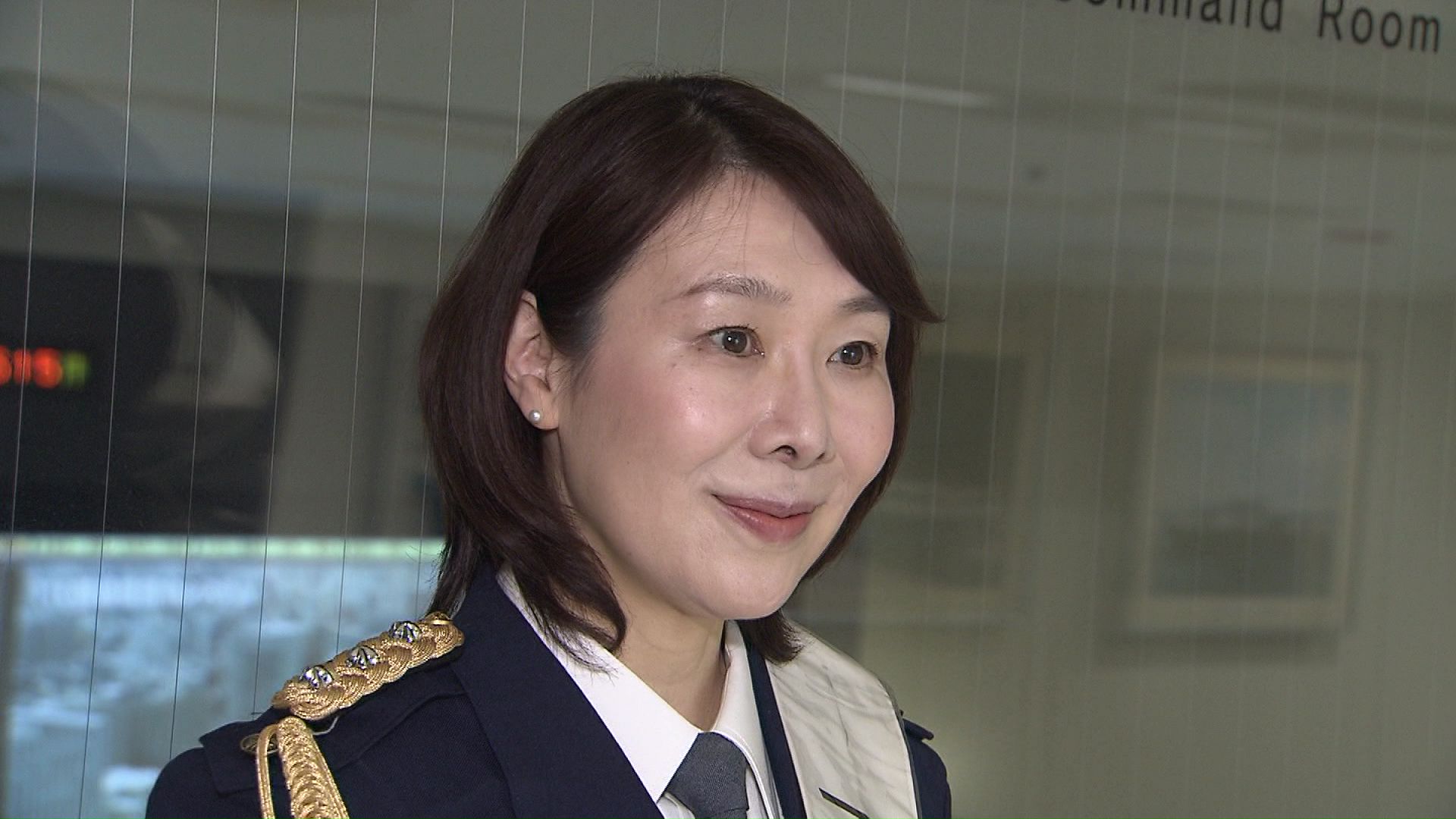 1月9日、札幌の道警本部通信指令室ではUHBみんテレの菅井貴子気象予報士が、一日通信指令室長として、交通事故を想定した通報の受理体験をしました。
