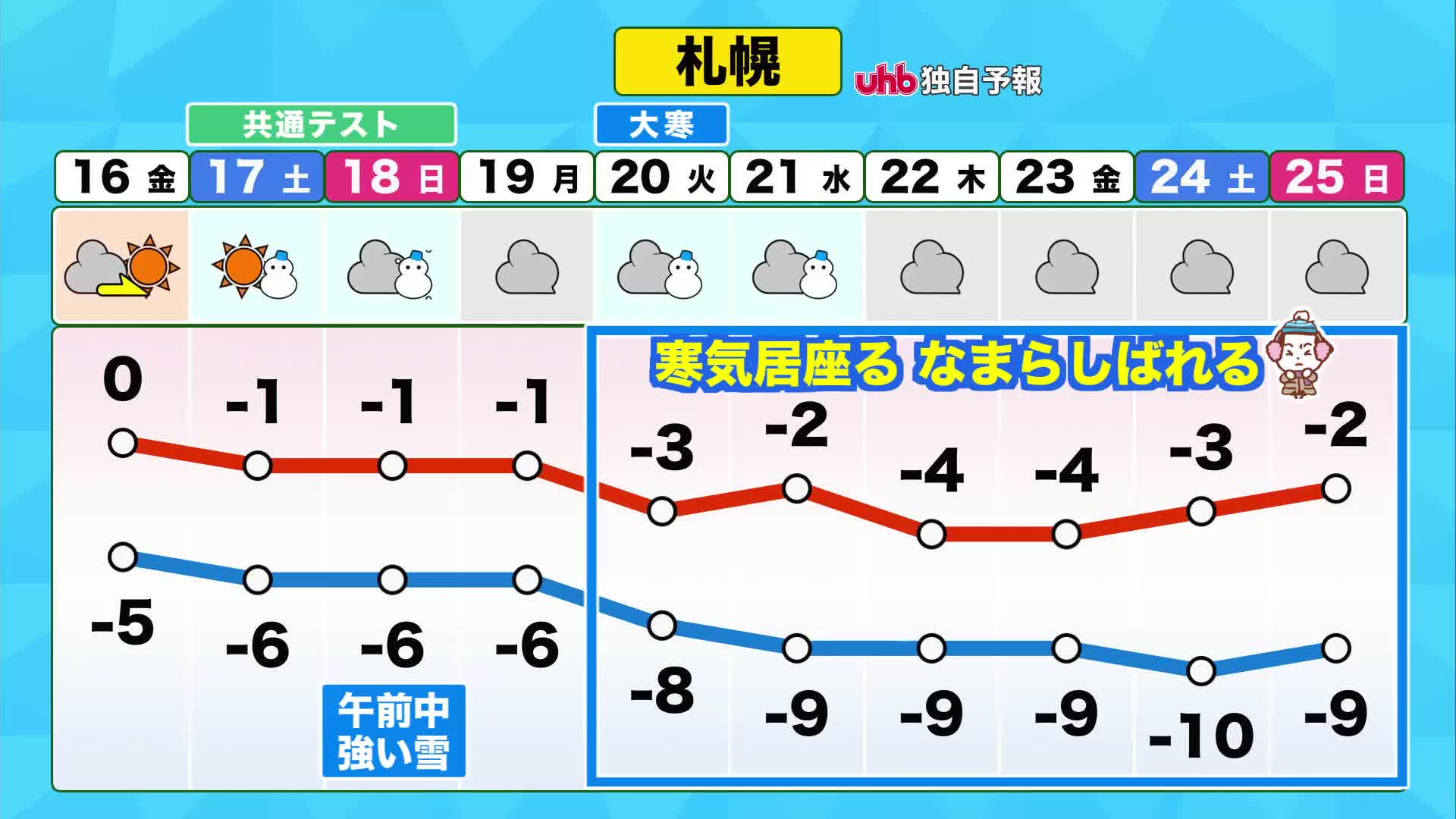 【北海道の天気 15日(木)】日本海側の吹雪は夕方まで あすにかけて穏やか!今週末は"大学入学共通テスト"一時的な強い雪に注意