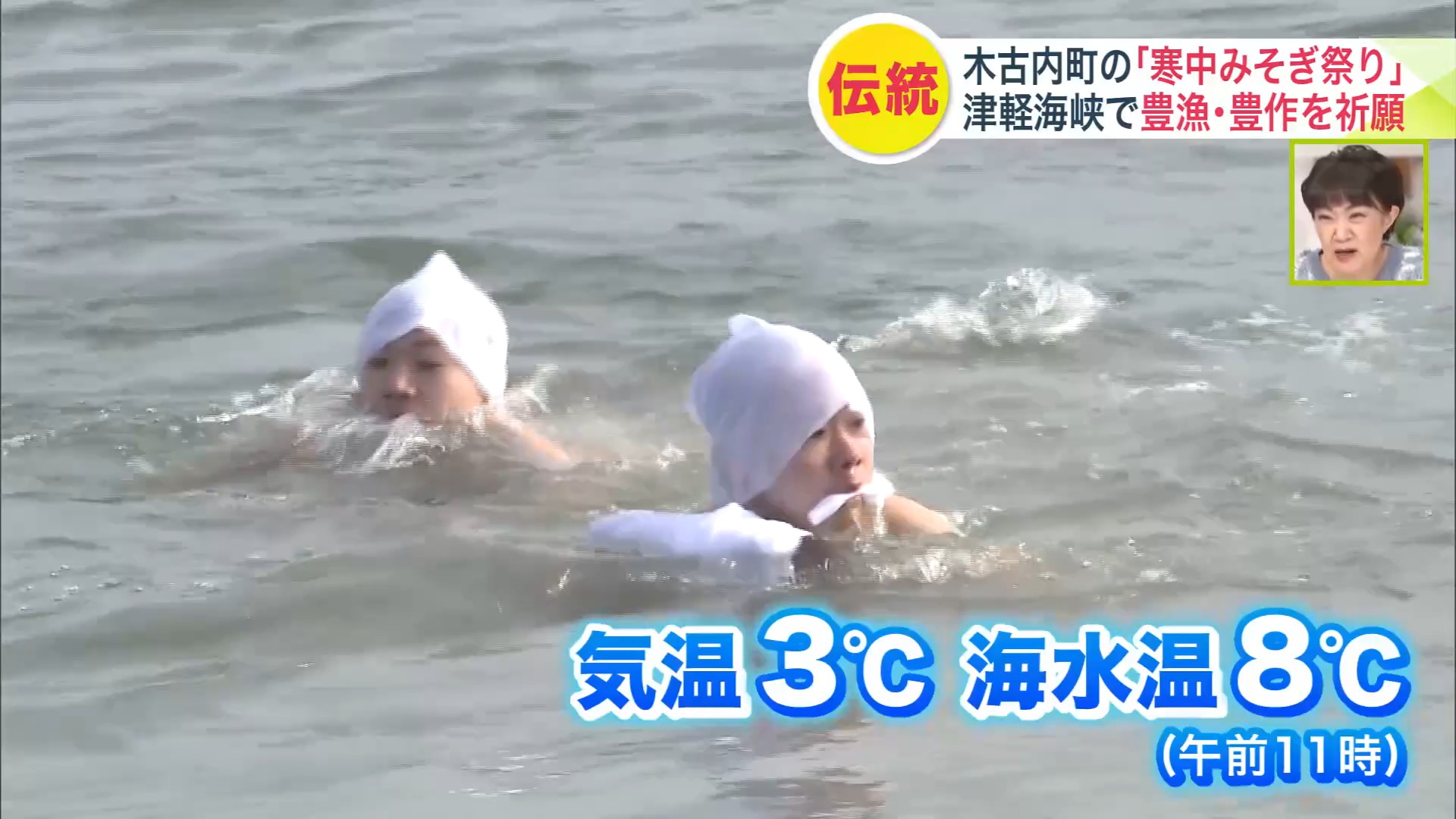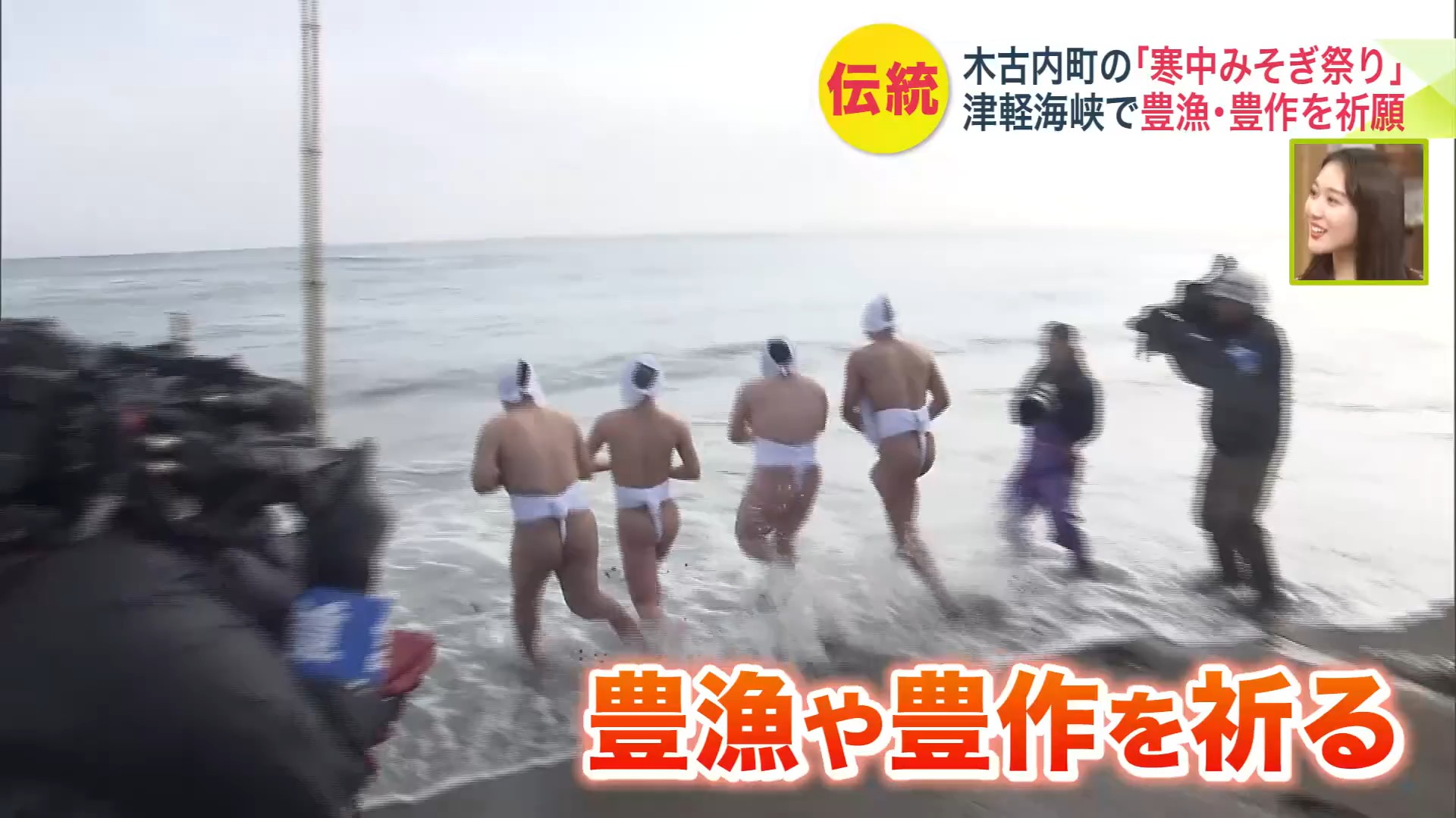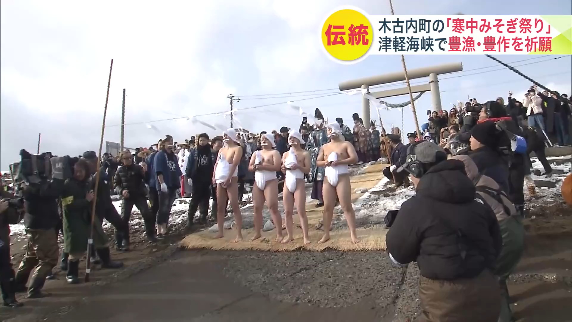 約200年続く伝統行事『寒中みそぎ祭り』気温3℃のなか豊漁豊作を願い18~27歳までの若者4人が"裸で"水温8℃の海に飛び込む!「無事に帰って来れてよかった」〈北海道木古内町〉