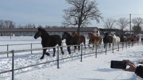 北海道十勝地方の音更町の牧場で、ウマの運動不足を解消する「馬追い運動」が1月19日から一般公開されています。