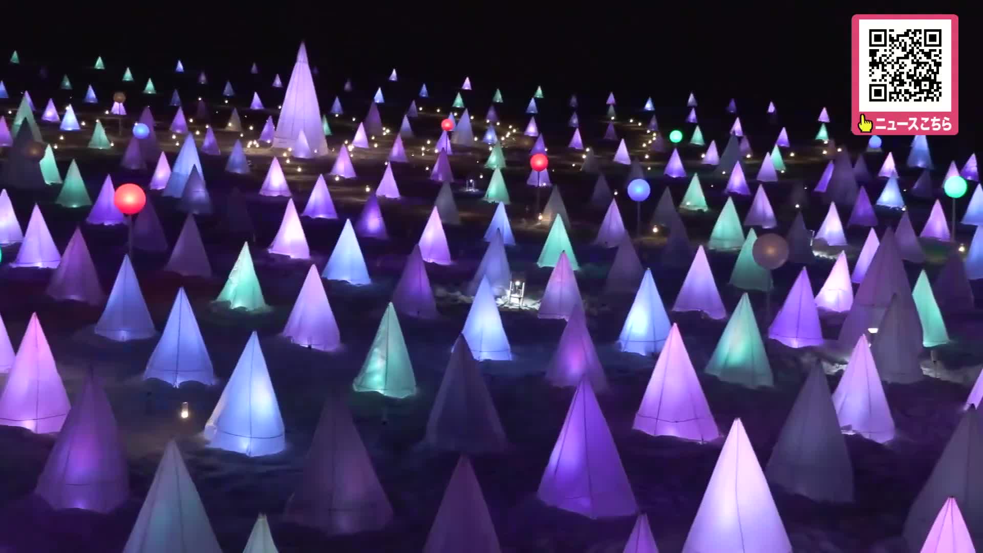 白い雪と煌びやかな光のコントラスト。音楽とともに変化して、見る人を幻想的な世界にいざないます。