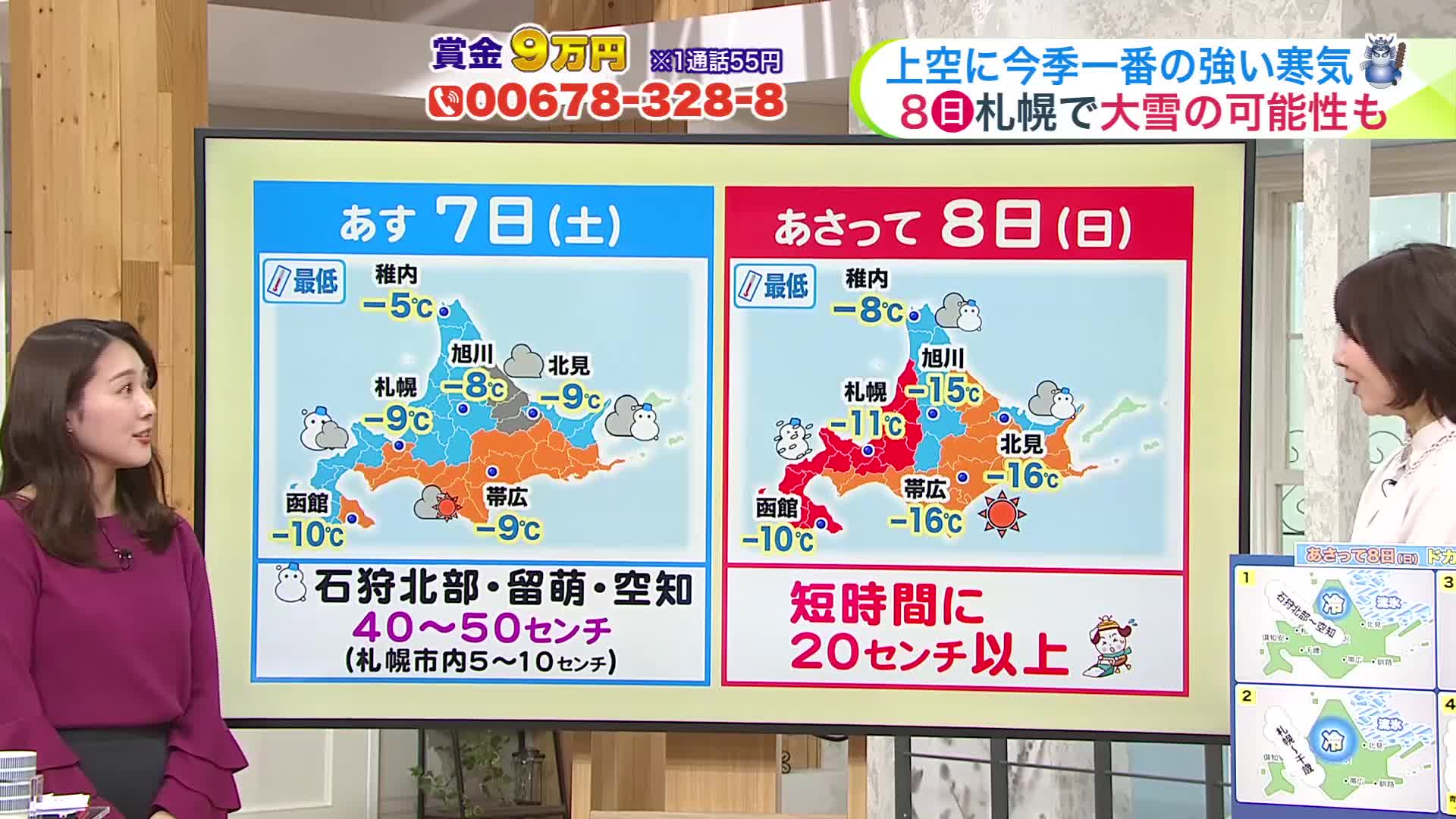 札幌は午後5時は、-7℃を下回っています。