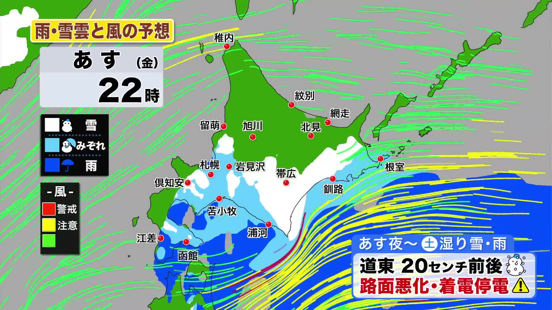 道南の沿岸は雨ですが、そのほかは、湿った雪が降りそうです。