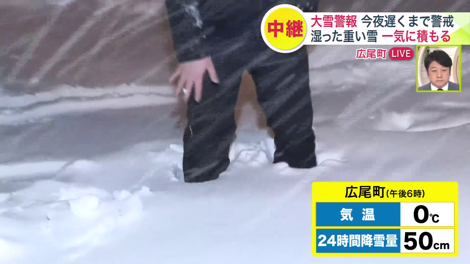 十勝地方の広尾町では4日、大雪警報が発表。午後6時時点でひざ丈まで達する大雪となりました。