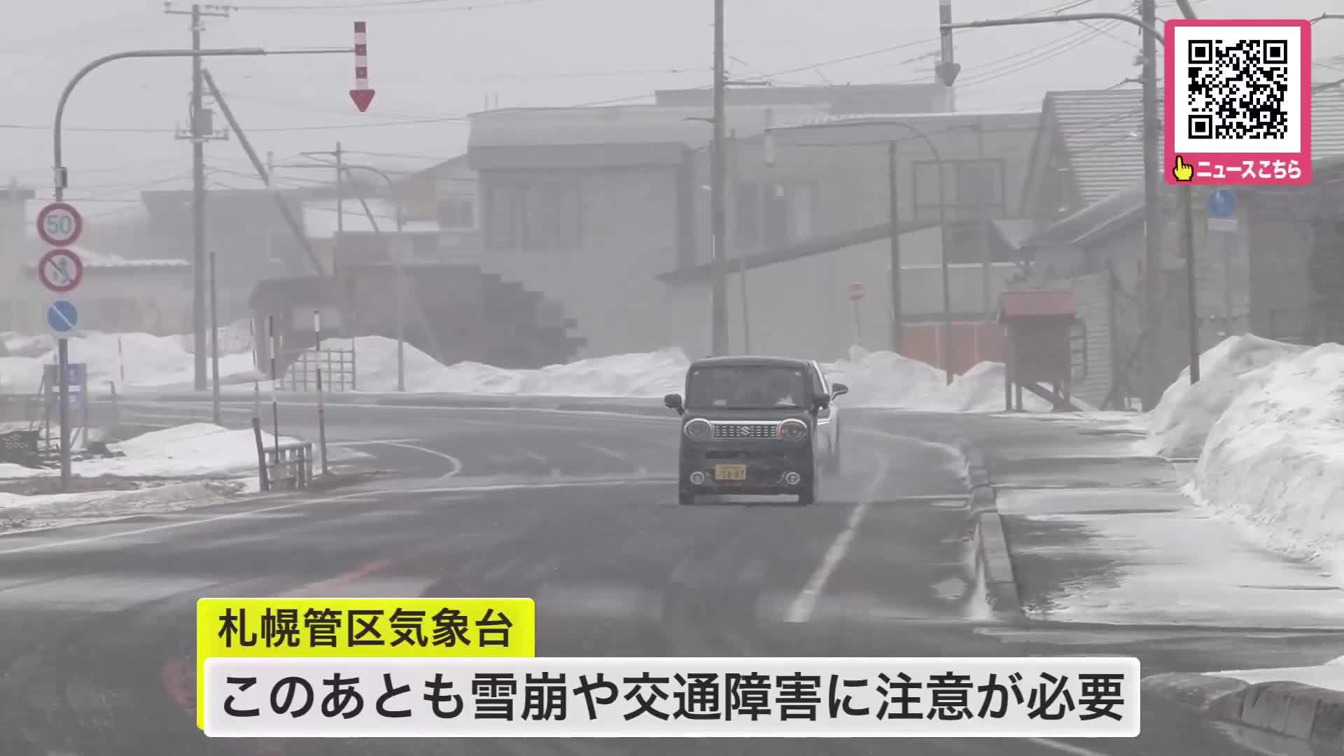風や雪のピークは過ぎましたが、留萌地方の増毛町ではバックカントリー中の40代の男性が巻き込まれる雪崩が発生していて、このあとも雪崩や交通障害に警戒が必要です。