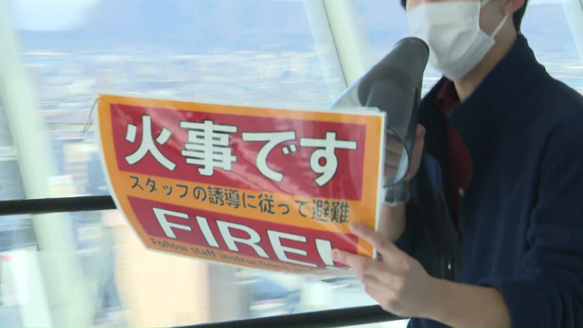 北海道函館市の五稜郭タワーで、避難訓練が行われました。