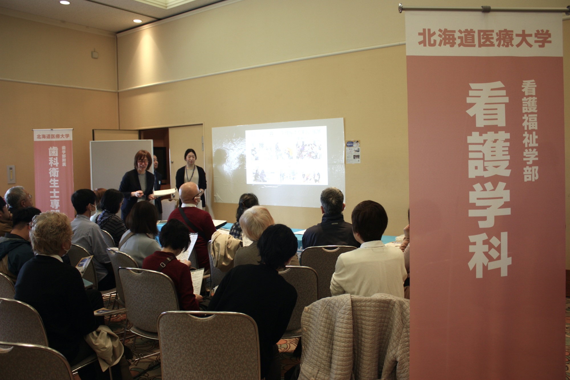 3月31日に北広島市内で行われた募集説明会には、北広島市民など約60人が訪れ、三国久美学長が「北海道医療大学は市民参加型の教育を行っていきたい。北広島市民の皆さんの協力をお願いします」とサポーターへの参加を呼びかけました。