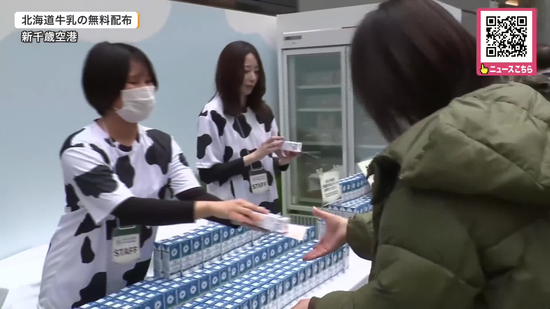 北海道の牛乳のおいしさを知ってもらおうと、4月5日から新千歳空港で牛乳の無料配布が行われています。