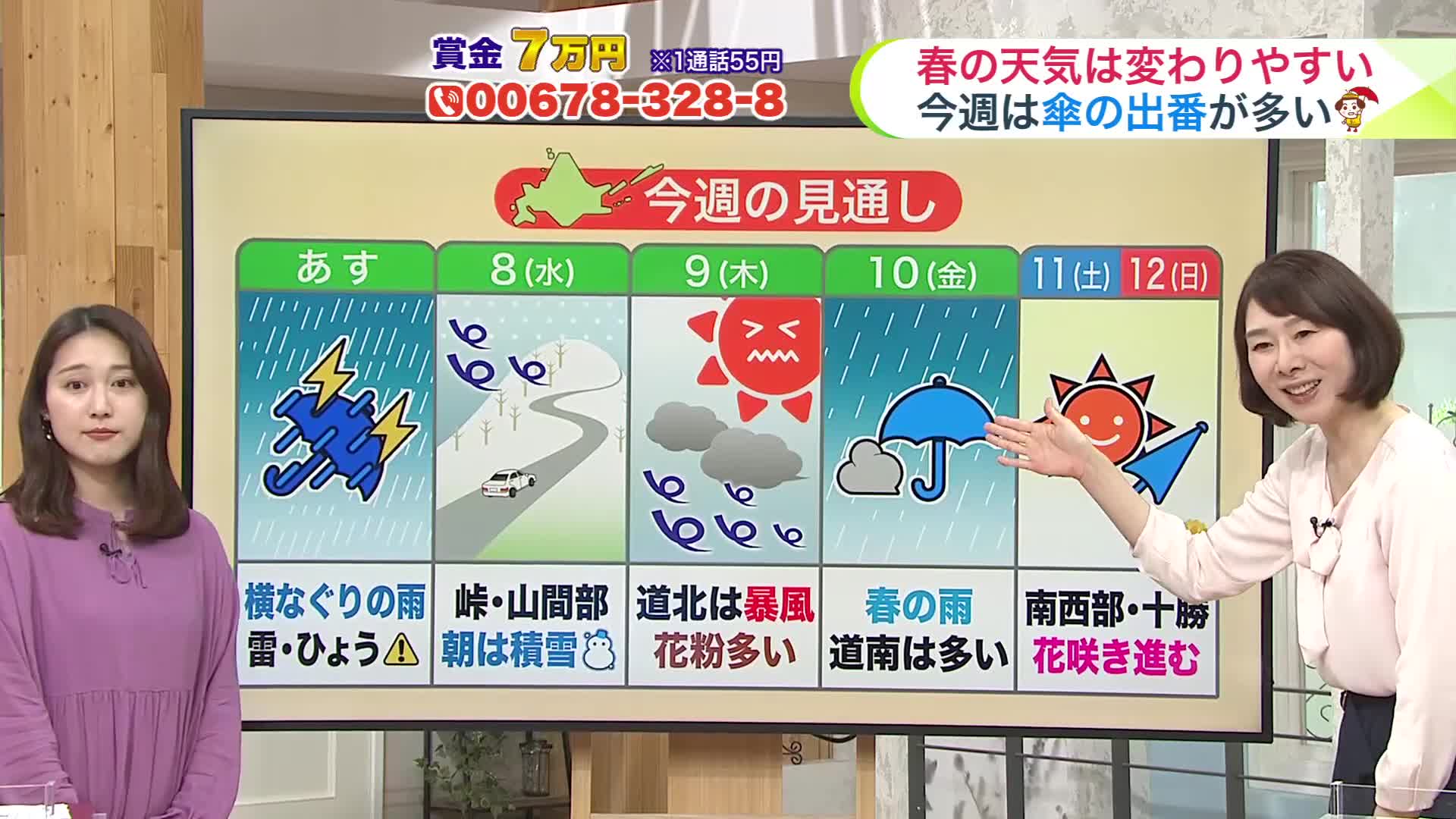 北海道【菅井さんの天気予報 6日(月)】春の天気は変わりやすい…あすは横殴りの雨で雷を伴う所も!今週は傘の出番も増える