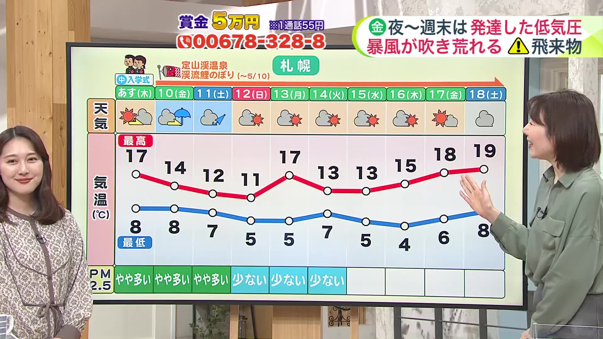 北海道【菅井さんの天気予報 8日(水)】あすは道北で暴風に警戒レベル…台風並みの風で飛来物にも気を付けて!週末も再び春の嵐に