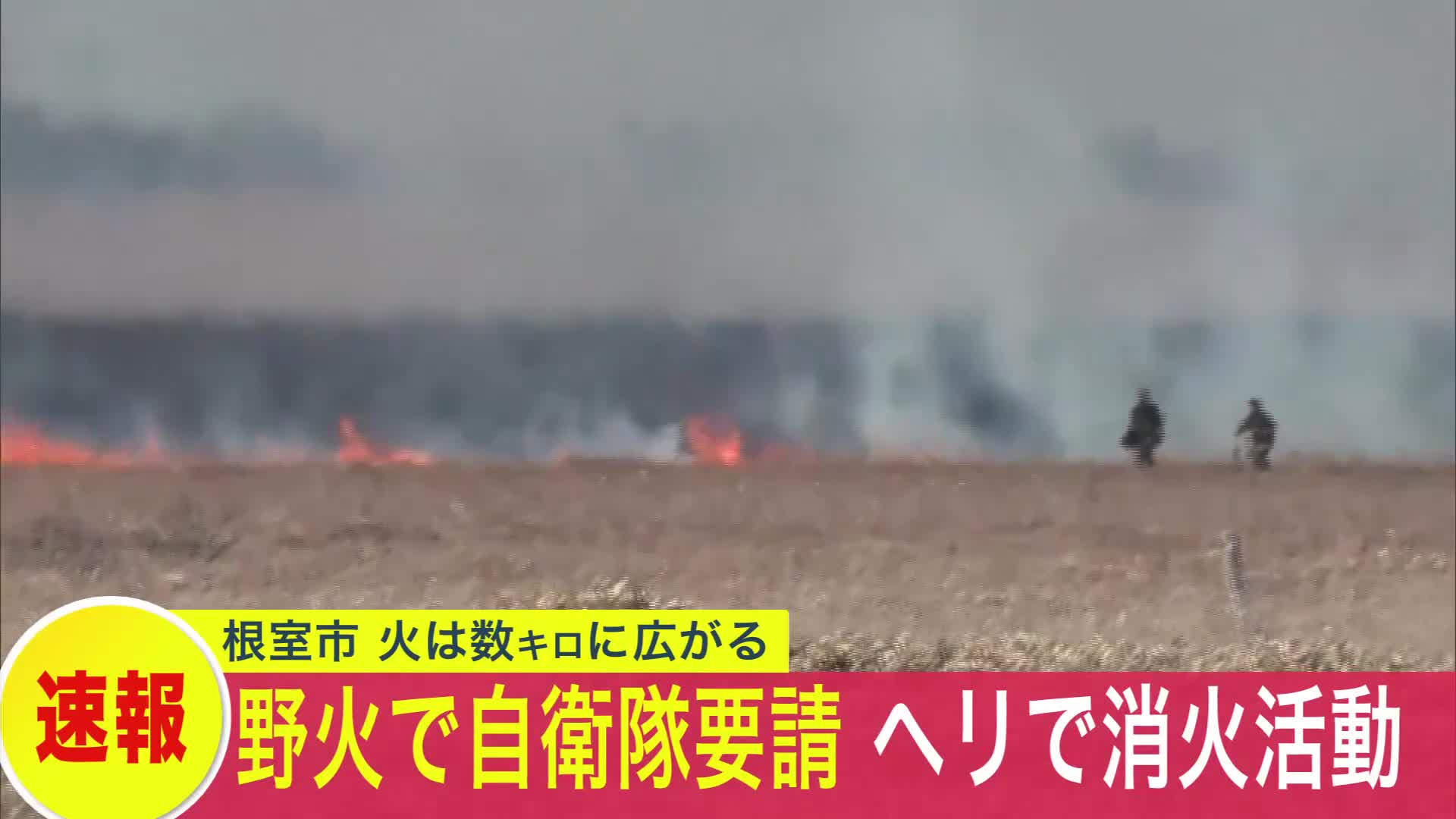 【数キロにわたって広がる火】北海道根室市で大規模な野火火災が発生…道は自衛隊に災害派遣を要請…ヘリで消火活動開始…現場付近では数人が避難