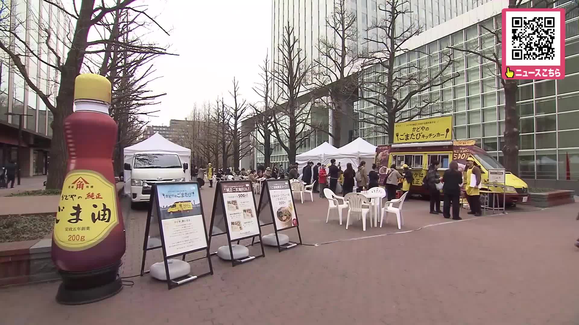 ごま油の老舗メーカー「かどや」と、札幌の食品製造・販売会社「ベル食品」がコラボしたイベントが札幌で開かれています。