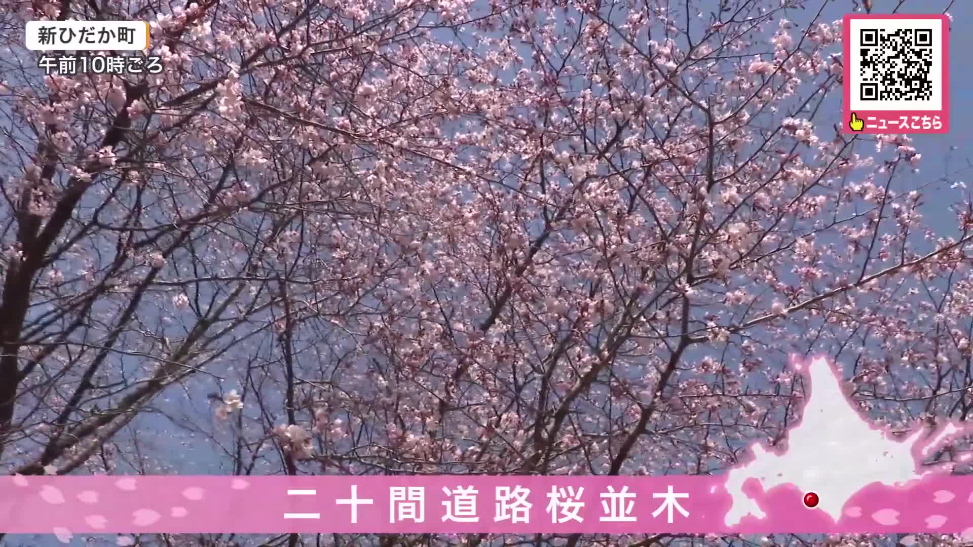 北海道日高地方の新ひだか町では二十間道路のサクラが開花し、花見に訪れた人たちを楽しませています。