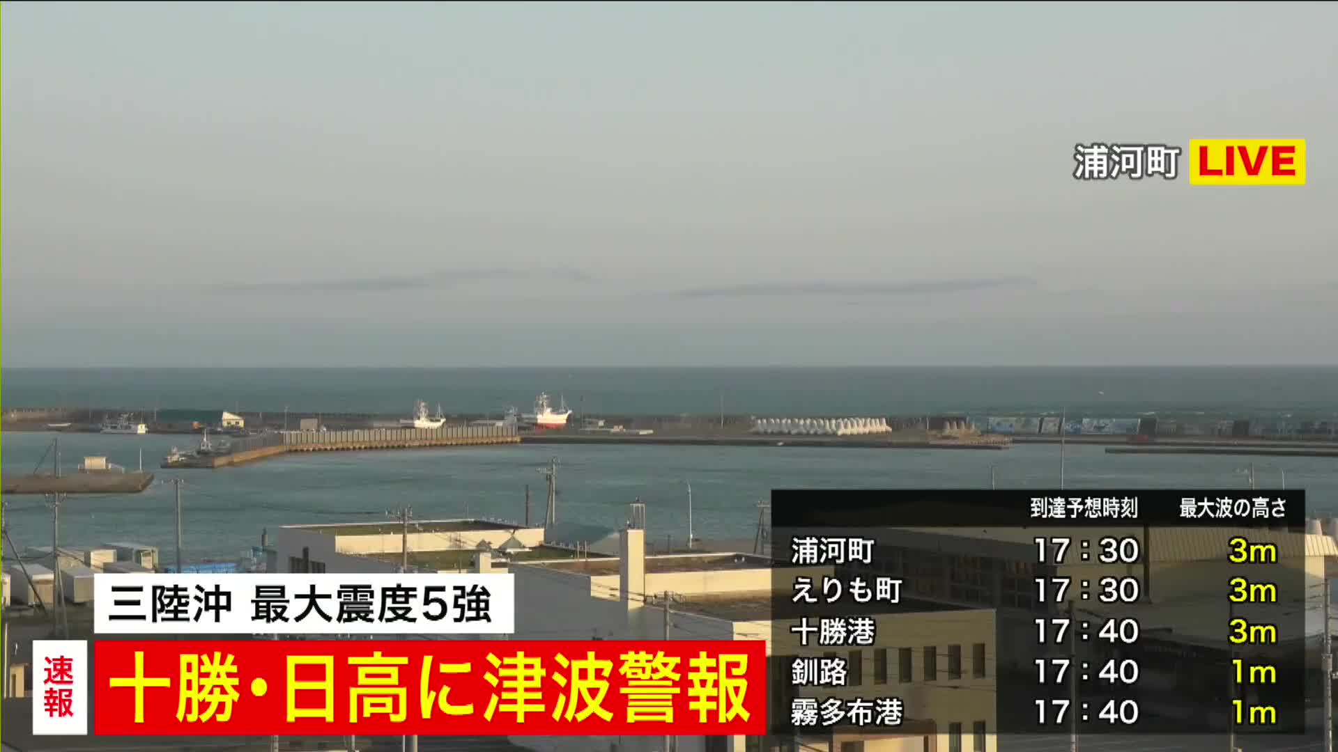 北海道の十勝日高に「津波警報」津波!にげて!三陸沖を震源とするマグニチュード7.5の地震