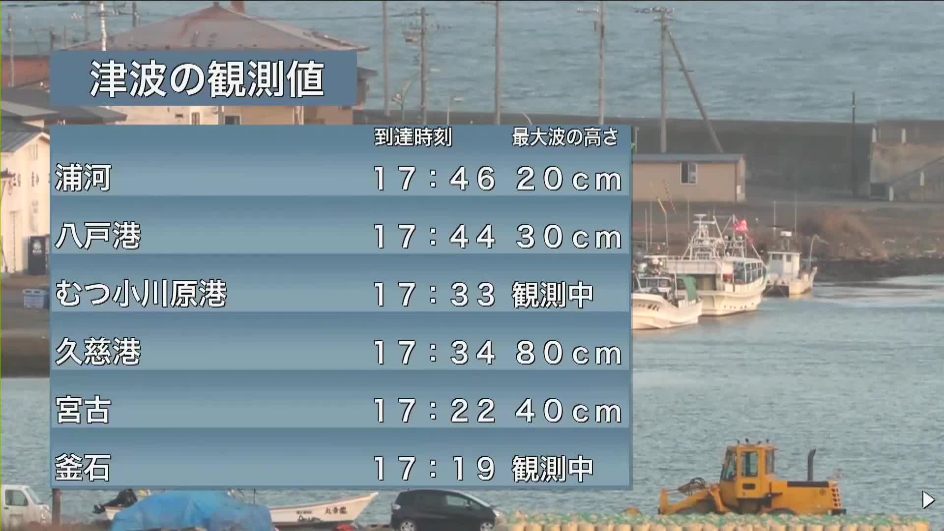 北海道の日高地方で津波が観測されました。浦河町で20センチ、えりも町庶野でも津波が確認され、道内で初めての津波到達となりました。
