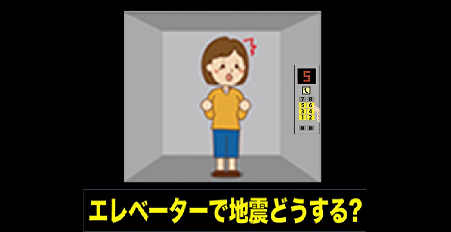 水や食料の準備、枕元に必要なものを揃えて寝るといった基本的な備えに加えて、もしもエレベーターに乗っている時に地震が起きたら、どうしたらよいのか、確認しましょう。