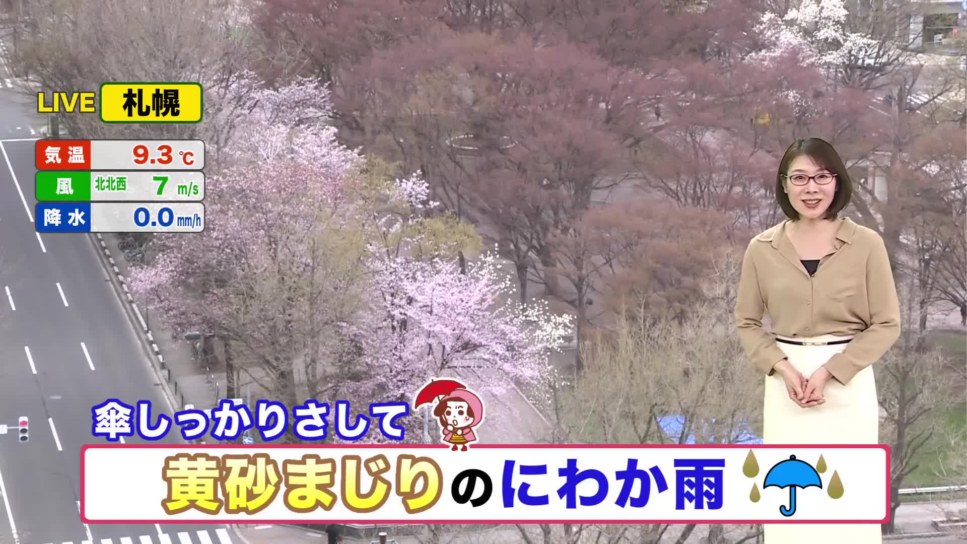 【北海道の天気 23日(木)】晴れても急な雨に気を付けて…黄砂まじりの雨はしっかりと傘で対策を!あす夜は道北やオホーツク海側で雪も