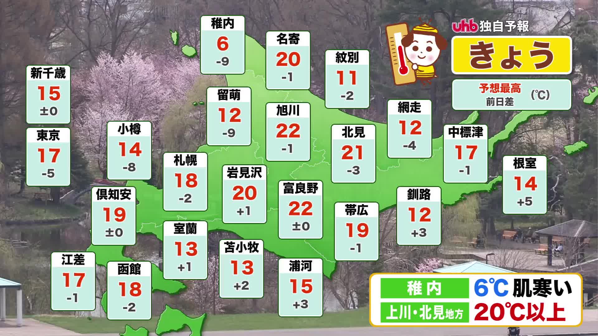 上空に寒気が流れ込むため、全道的に寒の戻りとなりそうです。