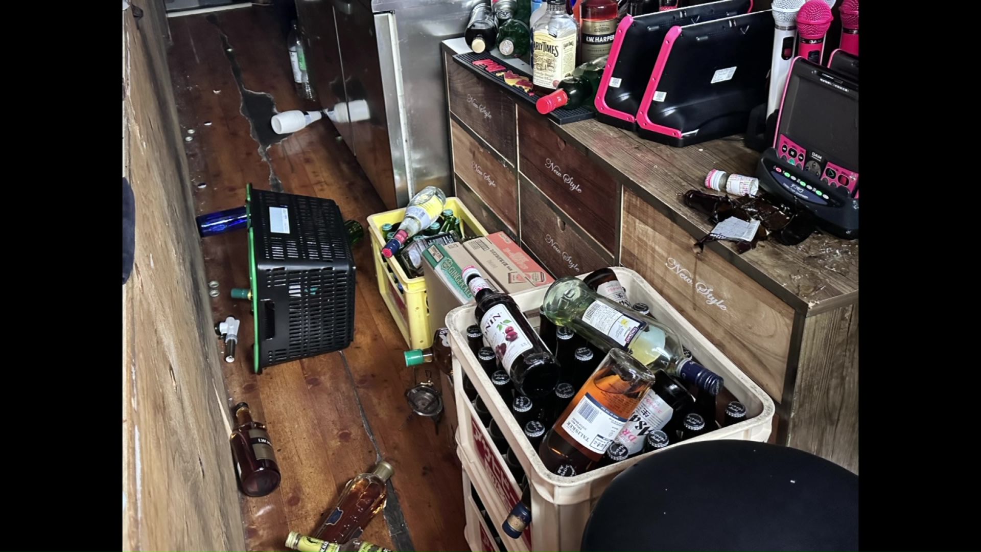 ポールが倒れガラスにヒビが入った