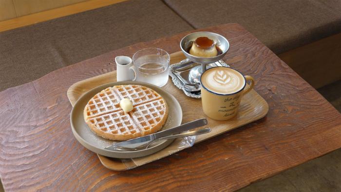 カフェラテ フラットホワイト 660円 キオスクプリン カスタード 460円 シュガーバターワッフル 690円 定休日 月・火曜