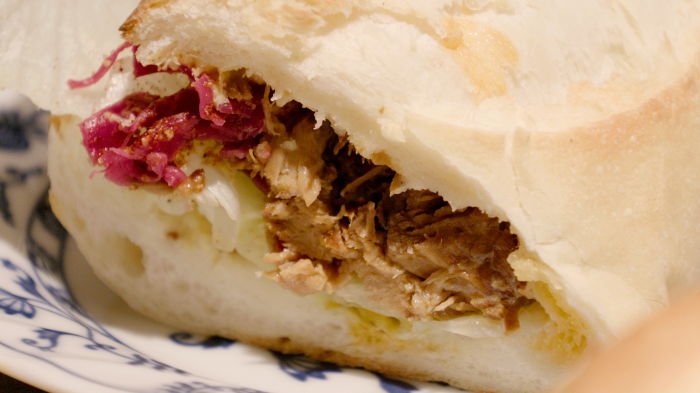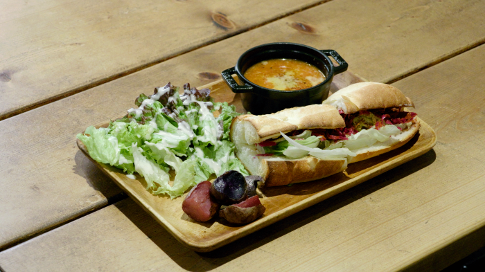 サンドイッチ 新ひだか健酵豚のプルドポークサンド 1200円 サラダ・スープ付き