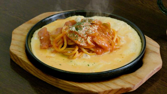よくばりセット 2893円 ハーフ鉄板ナポリタンスパゲッティ+フルーツたっぷり贅沢パンケーキ+コーヒー