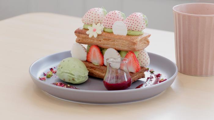 ・白いちごとピスタチオミルフィーユ 1780円 イートイン限定・1日限定10食・フリードリンク
