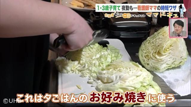 長ネギと大量のキャベツは、朝に切ってあるので入れるだけ。ふわっと仕上げるコツは、水を少し減らして長芋をたっぷり入れること。少し手間ですが、焼き上がりが全然違うんですって。