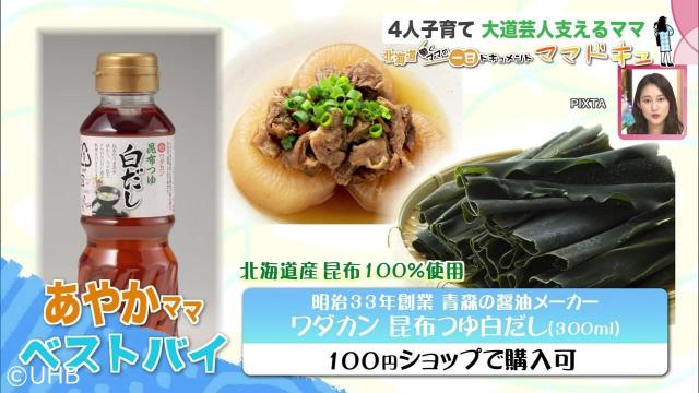 作っているのは「ワダカン」という、明治33年創業の青森の醤油メーカー。北海道産昆布のだし感が料理を引き立て、煮物やお吸い物、卵焼きなど、これ一本でおいしく仕上がるんです。