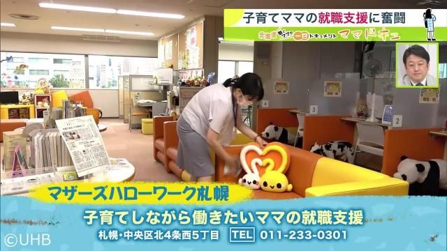 ゆうこさんは、「マザーズハローワーク札幌」という子育てをしながら仕事を探すママのサポートをする施設で働いています。