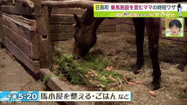 朝5時にゆづきちゃんも一緒に起きて、馬のお世話から1日がスタート。