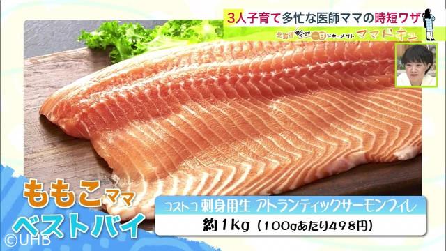 ベストバイは、コストコの特大サーモン。皮なし、骨なしなので、面倒な下処理なく食べられるのがお気に入りなんだそう。