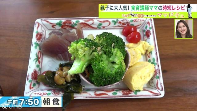 一晩塩に漬けて旨味をアップさせたマグロの刺身や、なめこ・ワカメをすし酢で混ぜて、一晩寝かせた酢の物など、食育講師の知識を生かした、簡単で栄養バランスのとれたメニューです。