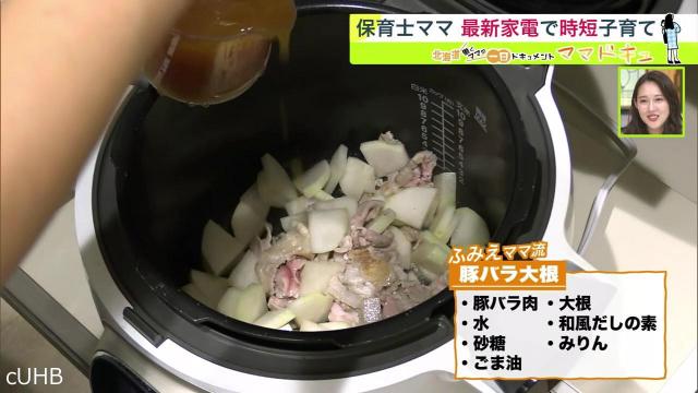 “最強の時短調理家電”とも言われる電気圧力鍋で、子どもたちが大好きな「豚バラ大根」づくり。調味料と食材を混ぜて、あとはまたまた「ほったらかし」。