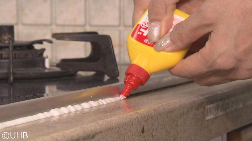 | 工程① | 木工用接着剤を隙間に塗っていく。多めに塗ってつまようじなどで奥へやると効果アップ |