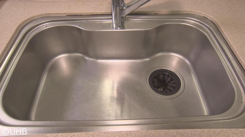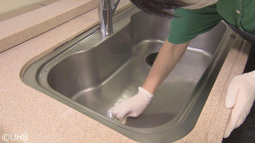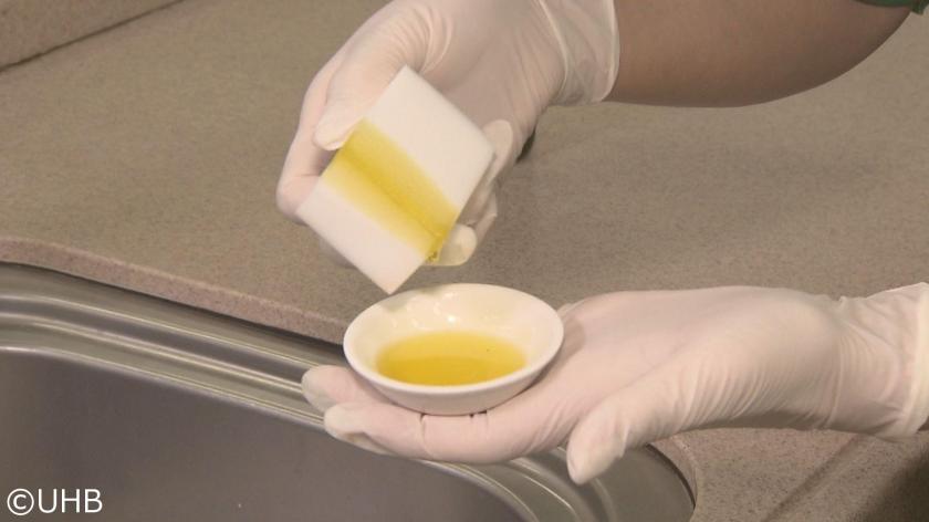 | 工程① | オリーブオイルにメラミンスポンジをつけてシンクに塗る。 |