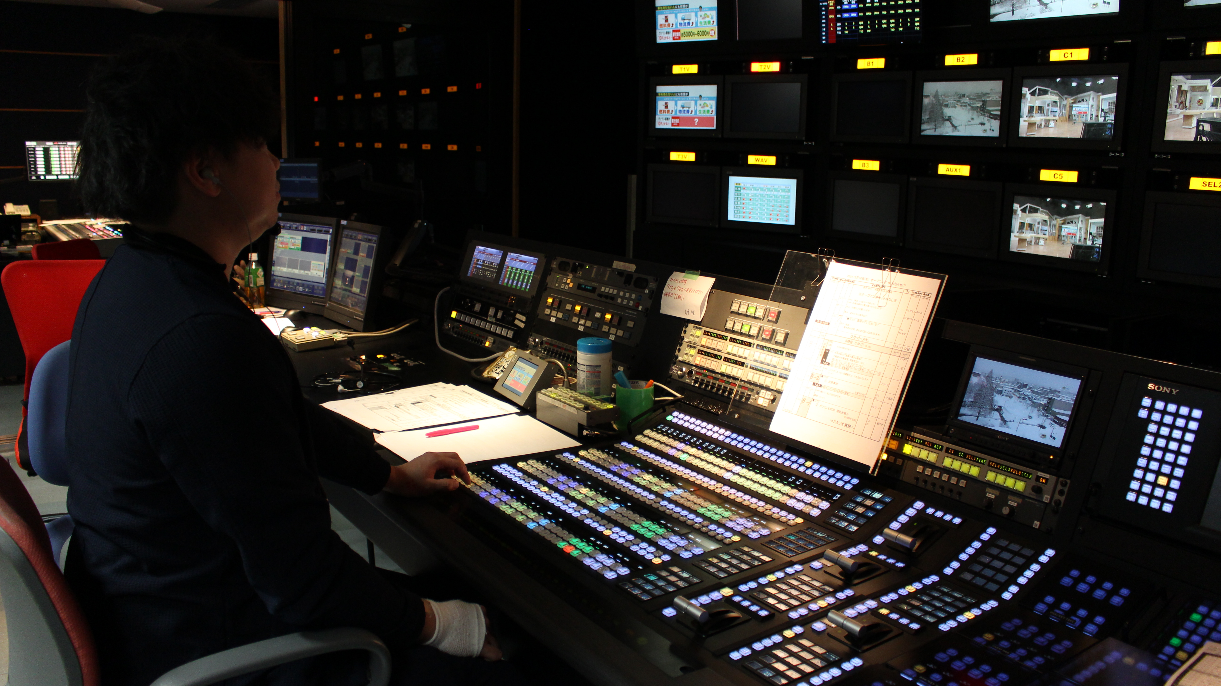 技術職としてはこれらの情報を皆さんに届けるために綿密な計画をたて、放送事故の無いように番組を成立するよう尽力しています。また、カメラを振るときは、自分のカメラワークでいかにその場の情報を表現できるかを常に考えています。