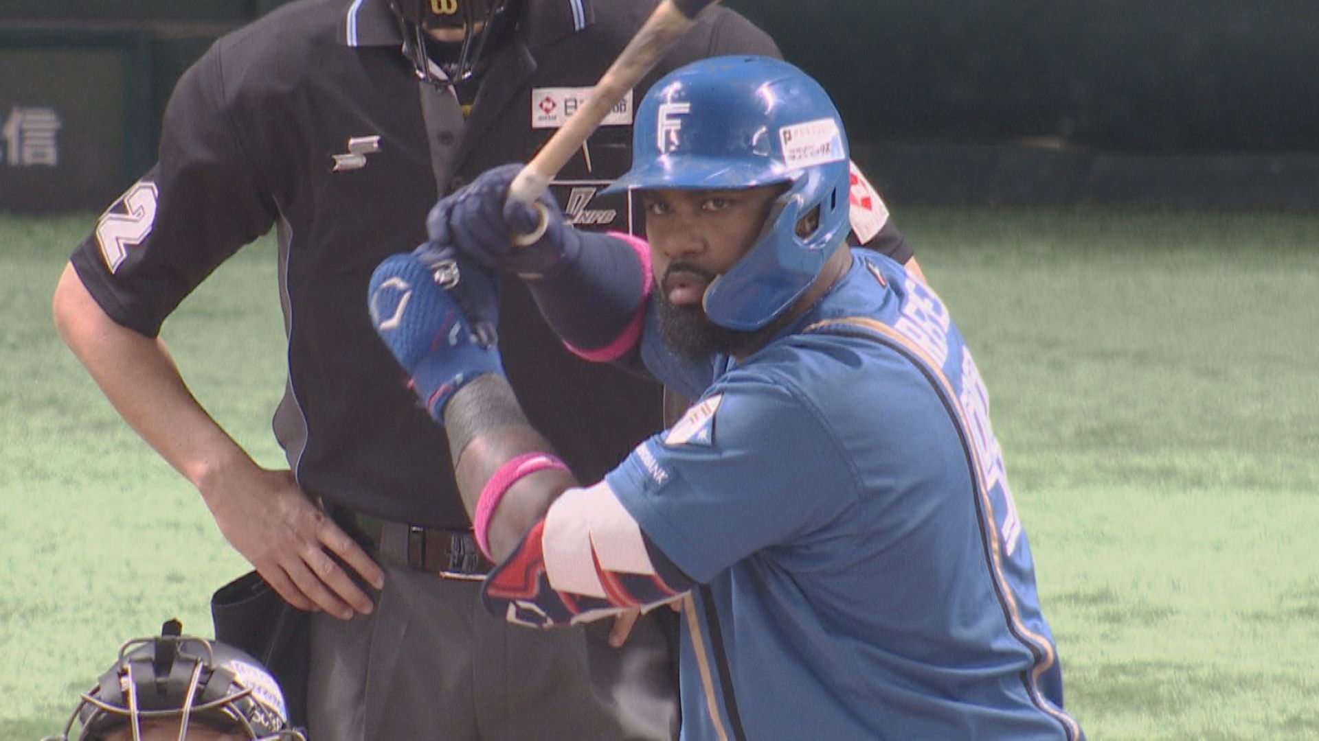 均衡が破られたのは4回表。「エネルギーたっぷりで、勝つ気満々です」と高いモチベーションで打席に入ったレイエスは、上沢の初球をレフトにソロホームラン。2-0とリードを広げました。さらに清宮幸太郎と山縣秀のヒットで二死一、二塁としますが、水野達稀は見逃し三振に倒れ、追加点とはなりませんでした。