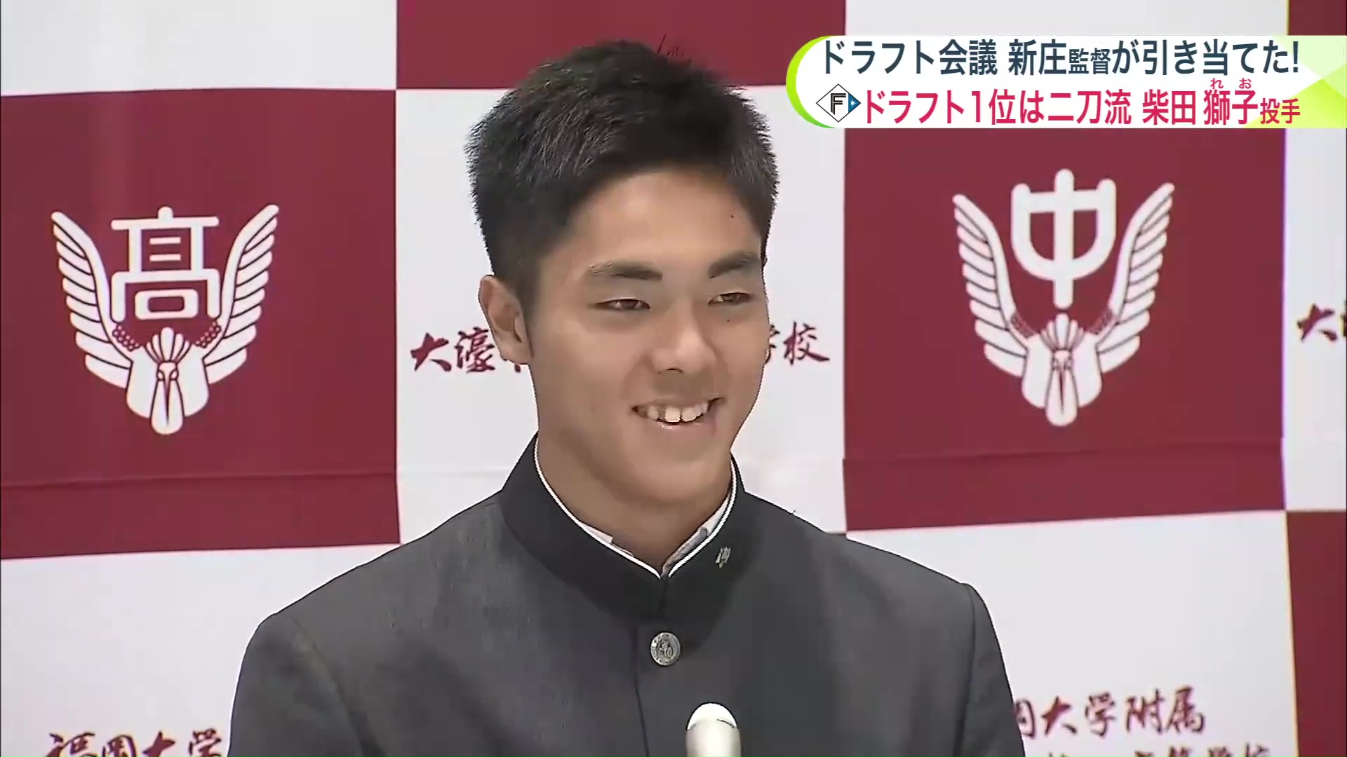 右手で引いた新庄監督!同級生のソフトバンク小久保監督に競り勝つ 運命のドラフト1位は最速149キロ&高校通算19本塁打の“二刀流” 福岡大大濠高校の柴田獅子(れお)投手