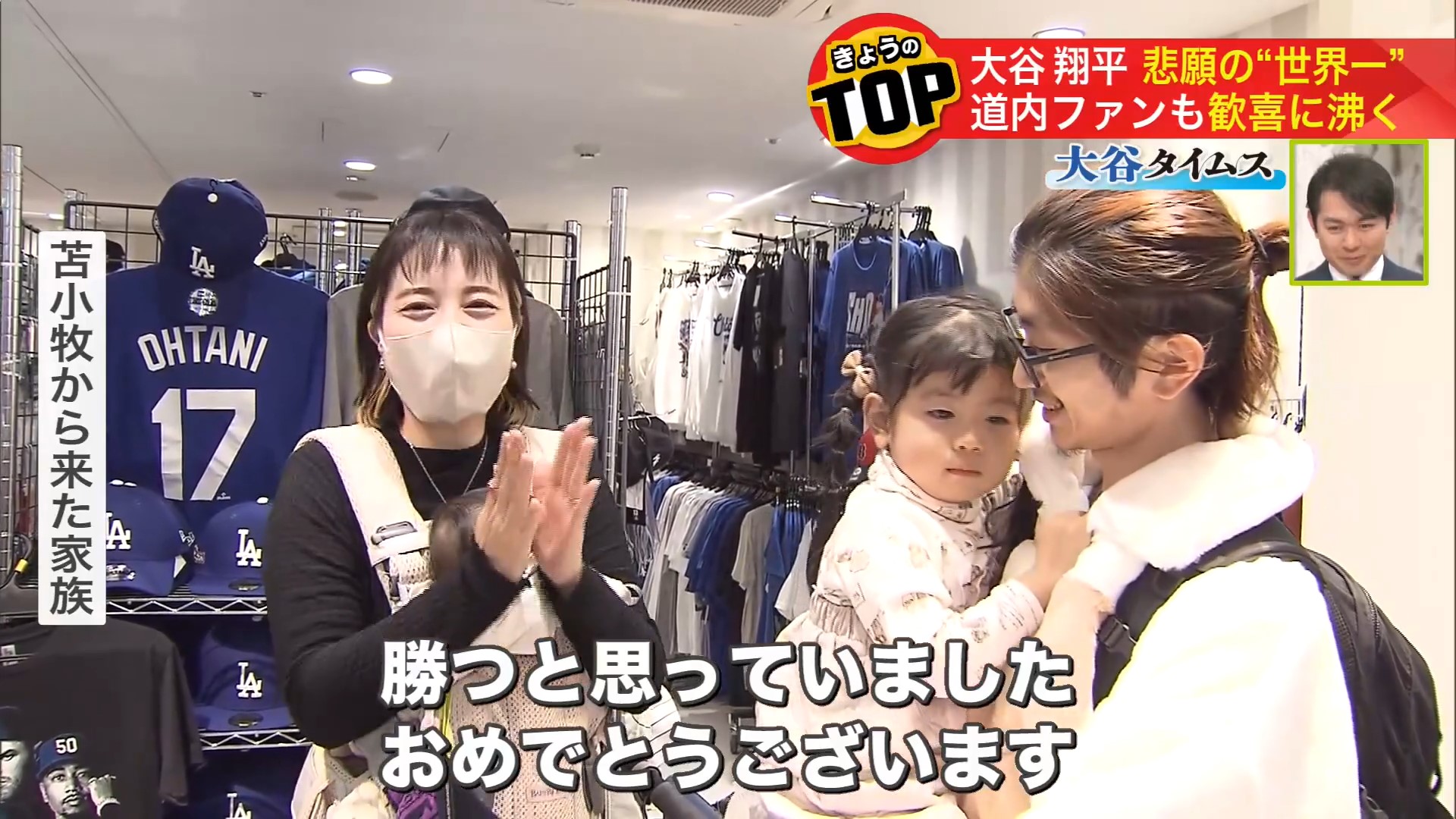「大谷選手を中心とするドジャースグッズがそろうこの店では優勝した瞬間、歓声が上がったといいます」(小出昌範ディレクター)