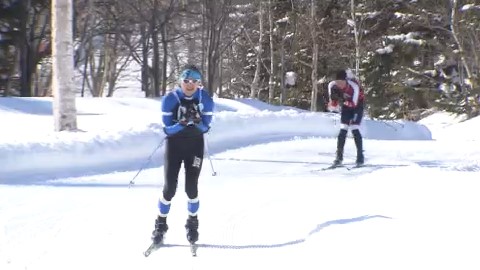 札幌市南区の滝野すずらん丘陵公園で行われたクロスカントリースキーの記録会。