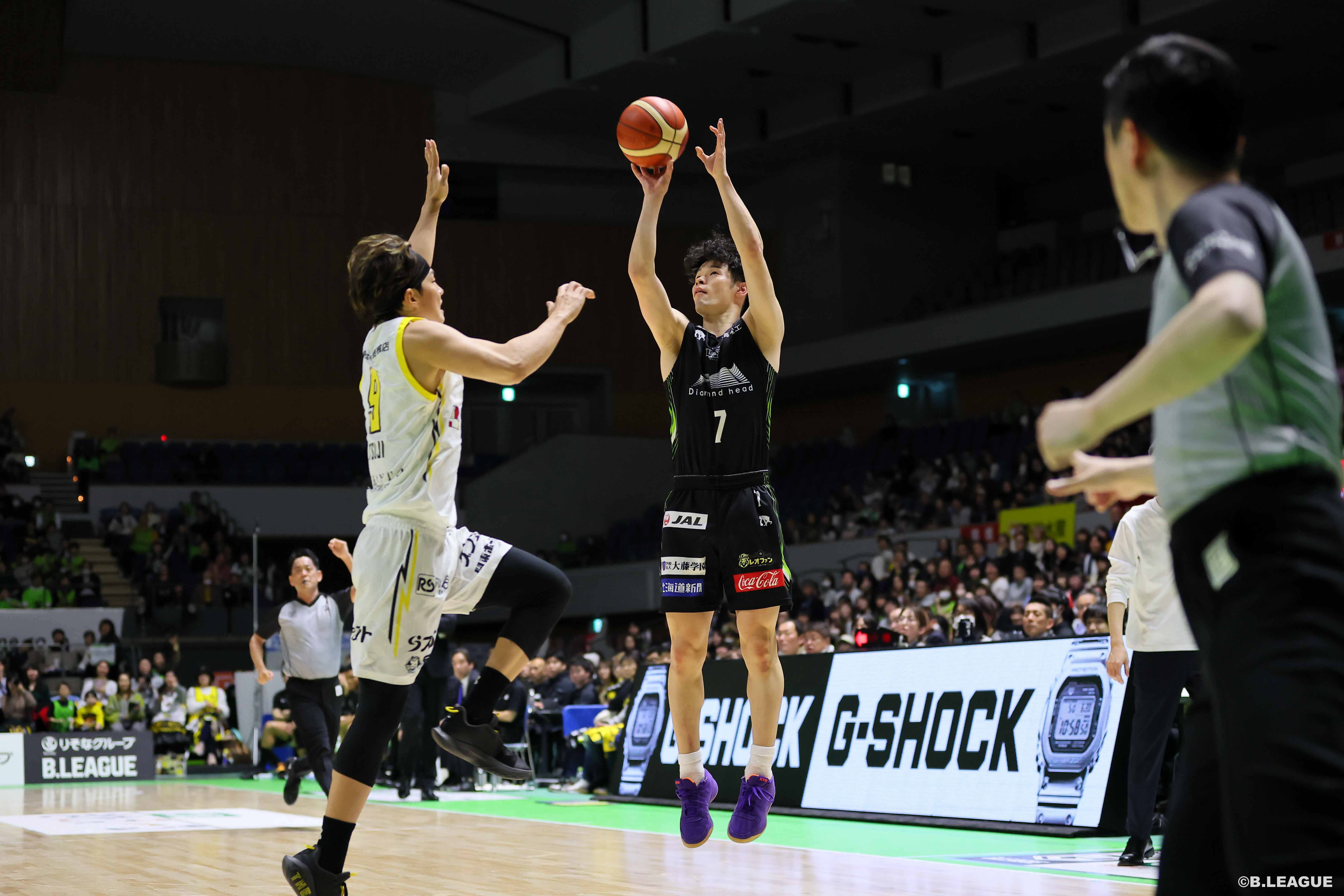 「なまら最高です!ディフェンスを頑張れない分、得点をとることが仕事なのでそれが果たせて良かった。(スペースが)空いたら打ち続けようという気持ちでプレーしました。今日はライアン・クリーナー選手がプレーできなかったんですけど、これまでプレータイムが少なかった悠介(鈴木悠介選手)やテル(内藤耀悠選手)の頑張りがあってこその勝利だと思うのでみなさん2人をたたえてあげてください。そして今日はなんといっても中野選手が流れを作ってくれました。苦しかったと思うんですけど休みの日も体育館に来て練習している姿を見てきたのでみなさん拍手をお願いします!」