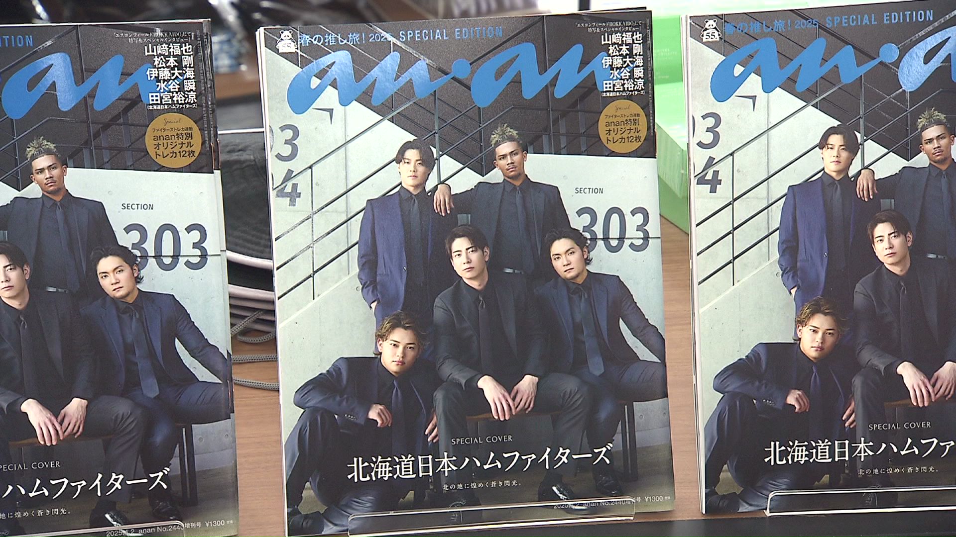 27日、北海道内で発売となった、ファイターズ選手5人のグラビアが掲載された「anan」スペシャルエディション。