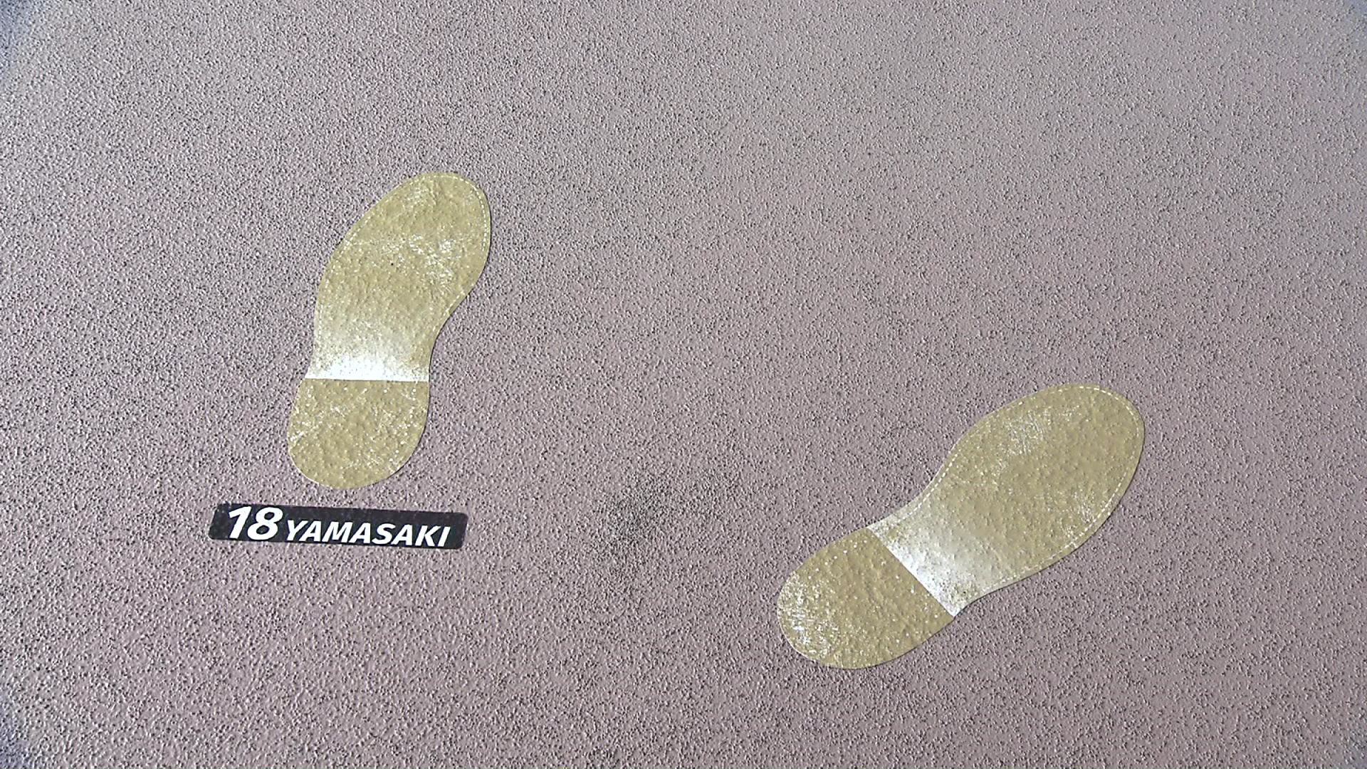撮影場所に5人の立ち位置が記されている