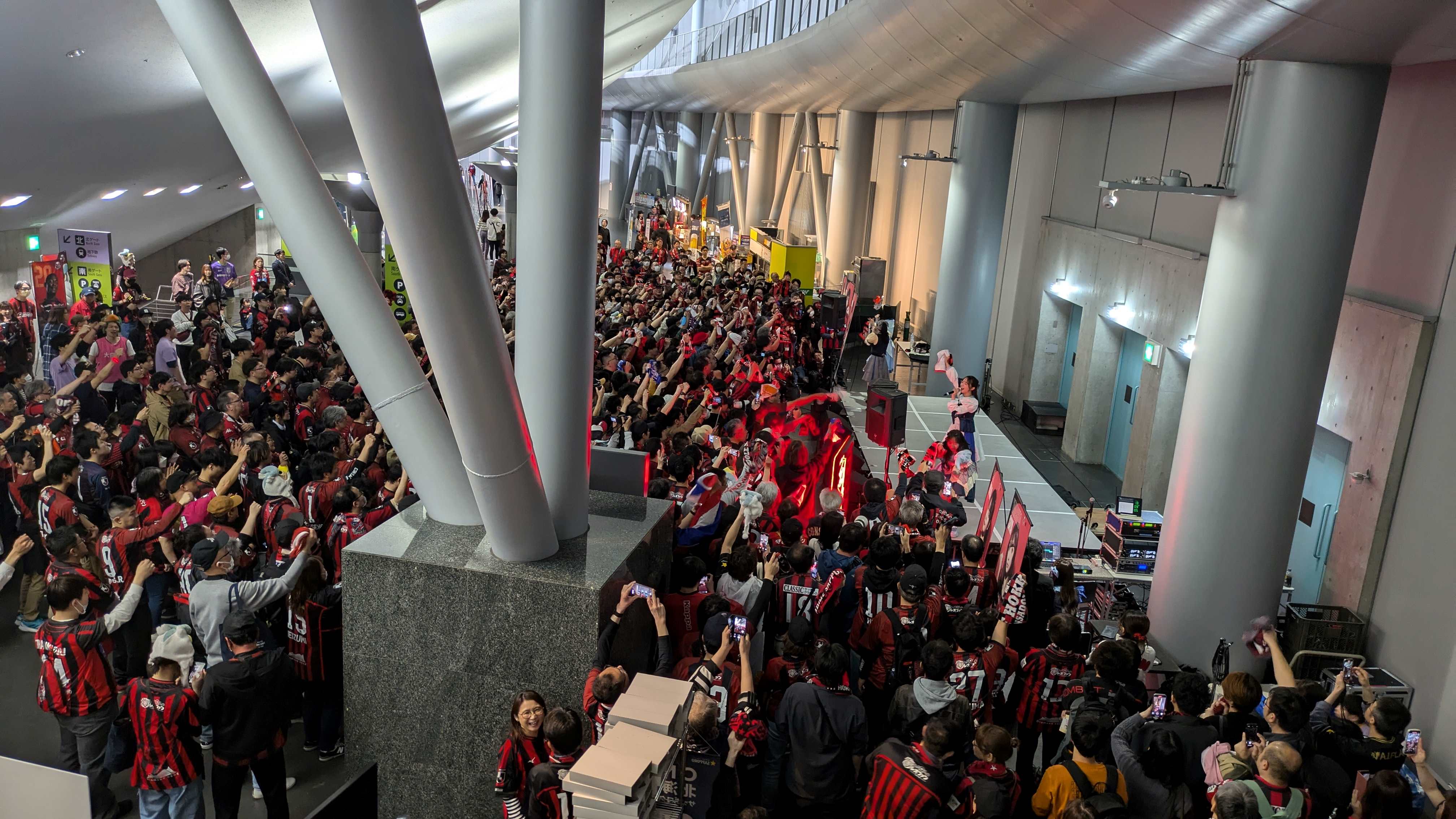 会場となった南側コンコースには札幌、藤枝両チームのサポーターが集まり、それぞれのアイドルに声援を送りながら盛り上がりを見せました。