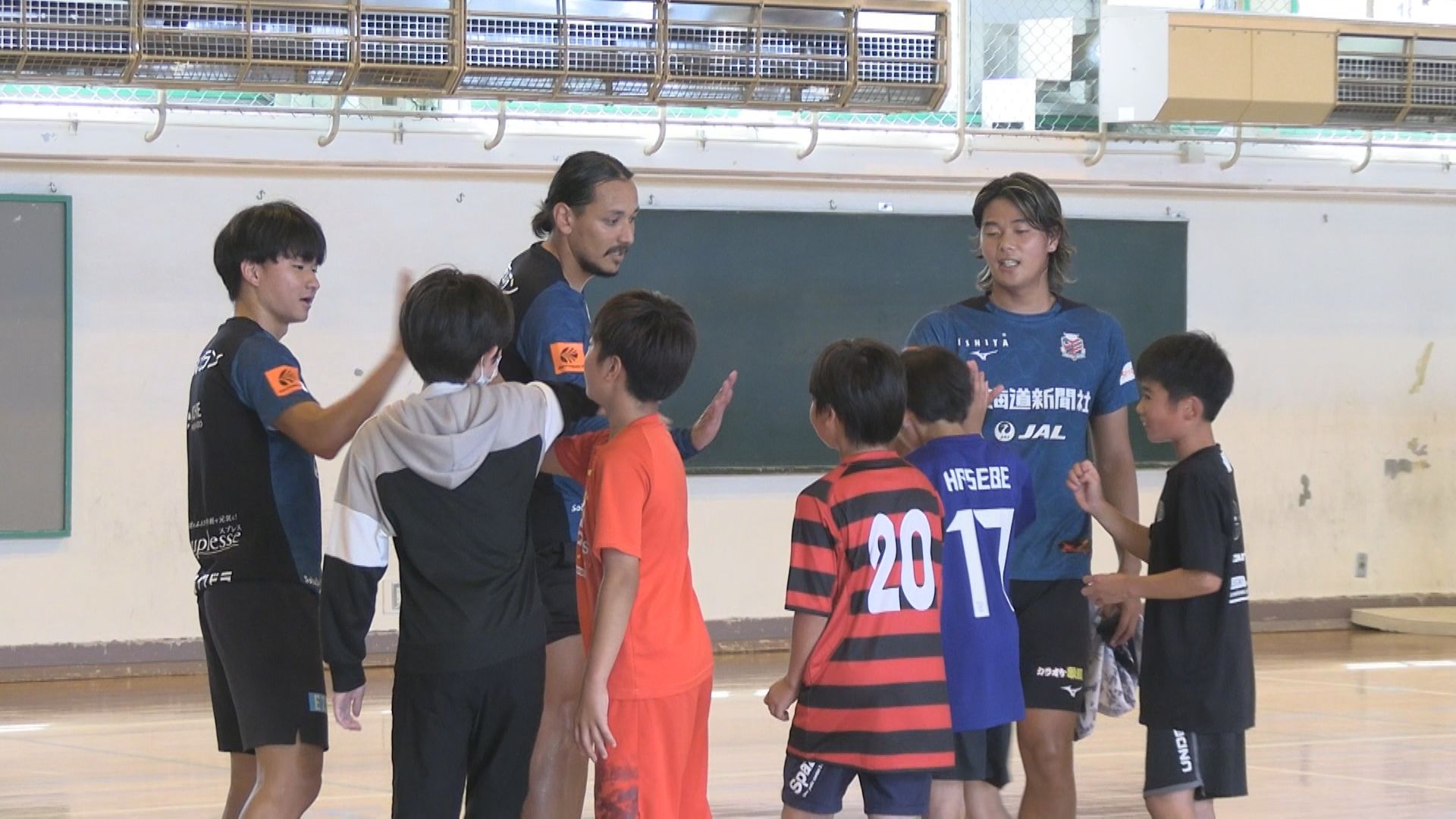 今回参加したのは、DF大崎玲央選手(33)、DF西野奨太選手(21/札幌市出身)、林田友兜選手(20)の3名。大崎選手は自ら志願しての参加となりました。